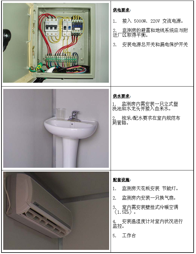 站房在建成后会提供供电系统,供电电压为AC220V,50Hz,电源容量不小于5kVA。电压稳定性达不到香蕉一区二区在线观看仪要求时,还会配置稳压电源;站房内的在线香蕉一区二区在线观看系统和电气系统采用单独接地方式,接地电阻不大于1&Omega;;香蕉一区二区在线观看站房内会安装暖气和空调,以保证室内环境温度、相对湿度等应符合工业自动化仪表工作条件的要求,其中空调设备能在停电恢复后自动启动;站房内采用节能灯照明。